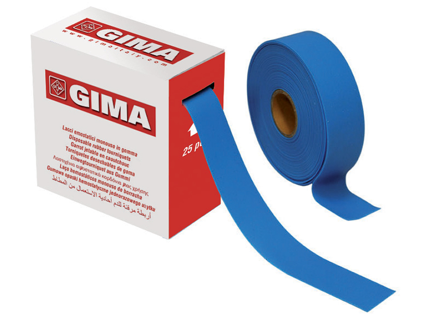 GIMA Tape Tourniquet Disposable je set od 25 prethodno izrezanih poveski bez lateksa. Namijenjene su jednokratnoj uporabi za smanjenje rizika križne kontaminacije pri venepunkciji i drugim postupcima gdje je potrebna kratkotrajna venska staza.