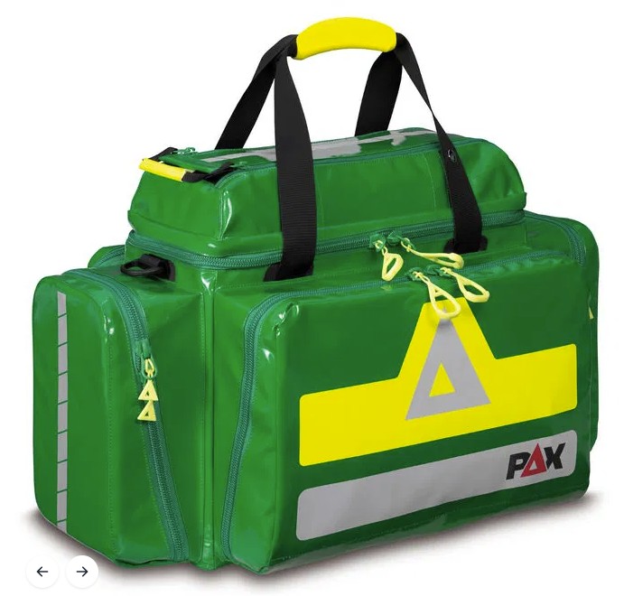 Torba za hitne slučajeve za profesionalnu upotrebu. Unutarnji pretinci su promjenjive veličine, prednji i stražnji džepovi mogu držati XL intravenoznu infuziju, XL intubaciju, držač ampula – L ili XL moduli. PAX držač ampula XS i S stanu u bočne džepove. Gornji džep za brzi pristup s dvosmjernim patentnim zatvaračem. Alternativno se može koristiti omča i pregrada velike torbe. Isporučuje se s PAX udobnim remenom za rame i 2 unutarnja džepa veličine M.