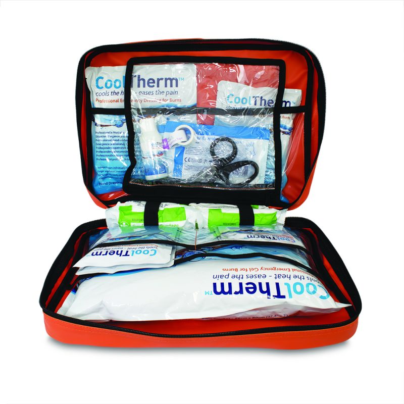 CoolTherm Burn Kit Large namijenjen je početnom zbrinjavanju opeklina u radnom, javnom i hitnomedicinskom okruženju. Sadržaj je predviđen za brzo hlađenje, zaštitu i pokrivanje opečenog područja do daljnje medicinske skrbi.